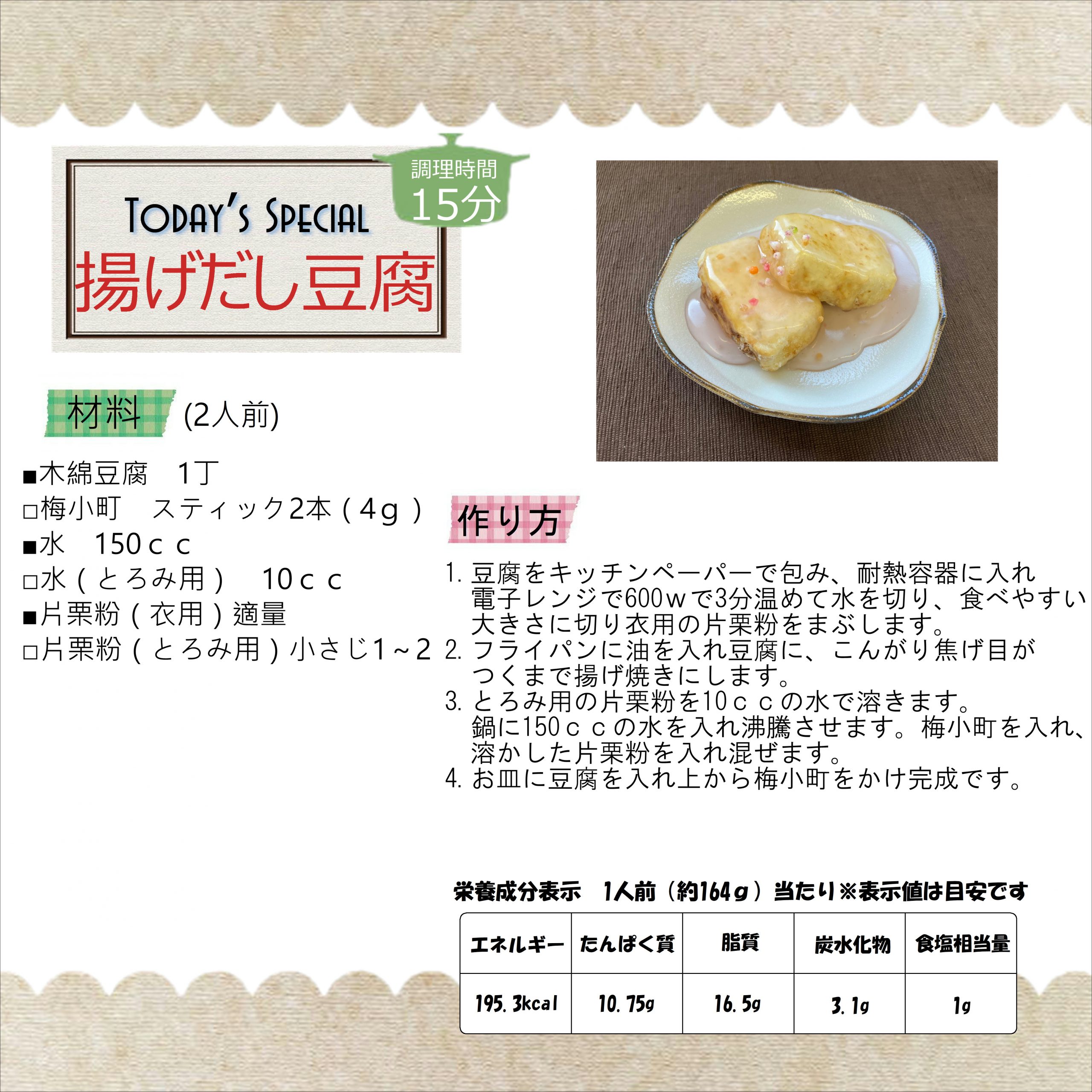 ④お皿に豆腐を入れ上から③の梅小町で作ったあんかけをかけ完成です。